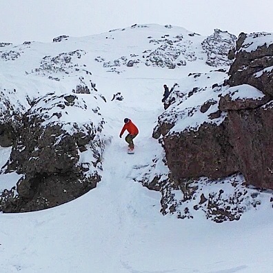 The Saddle consists of the terrain on the lower part of The Cirque and over to the lower part of Lookout Vista. If you’re daring, hug the ropeline and go for Hell’s Delight on the edge of The Cirque. But, if you’re a bit more responsible, then head into The Saddle proper. From there, it’s possible to plinko your way back down to Devil’s Corral and across to Chair 2-Caples Crest or head back towards the village.